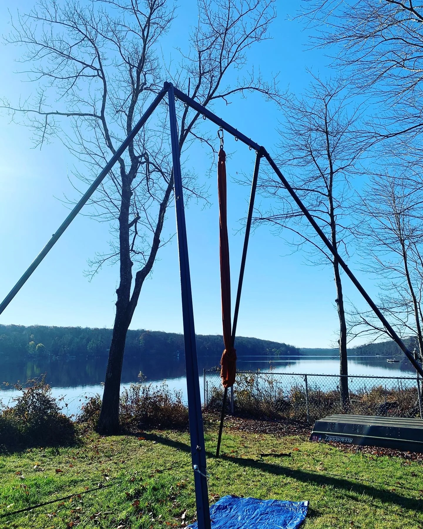 Jacqueline offers aerial acts for private and public events on open silks, rope, hammock, Lyra, and dance trapeze. A minimal height of 10 ft is required for the event space. A portable rig will be set up in the space. Check out the rig pictures below.